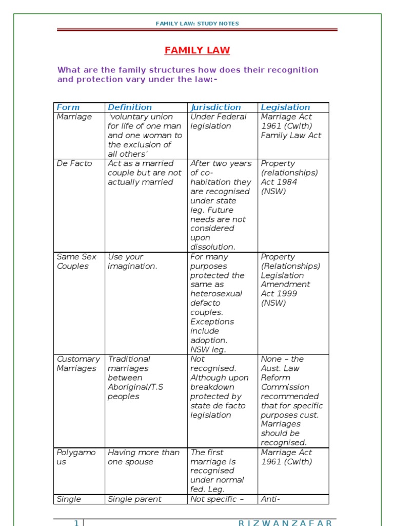 Legal studies. Family law exam notes. Family law: topic summary of chapter/study notes